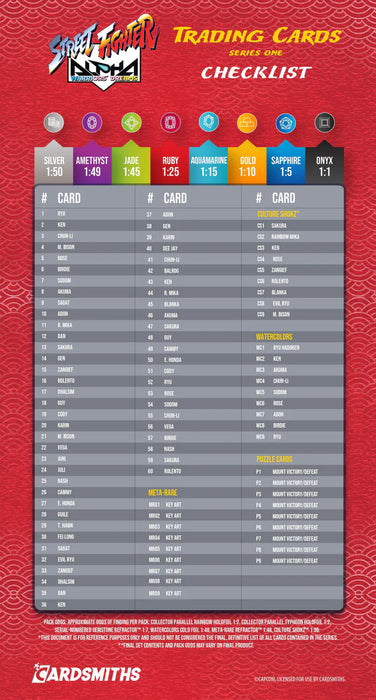 KO! Get ready for the next round with exclusive Street Fighter Alpha: Warriors' Dreams Trading Card Packs from Cardsmiths. With over 85 unique trading cards to collect in the series, every unboxing feels like entering a new stage of the tournament. Will you find your ultimate fighter?